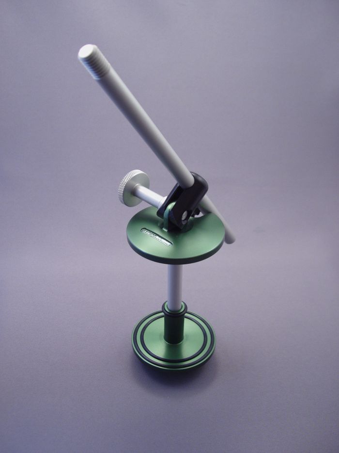 The discs of the 'Spirit' models are machined from aerospace-grade aluminum, with a high quality anodised finish in a choice of colours. The solid aluminum discs make the Spirit models slighty heavier than the 'Light' models but the improved purchase of the boom grip on the aluminium disc's lug allows heavier microphones to be attached securely. The discs of this model are Green and the shafts, booms and thumbscrews are all Silver.