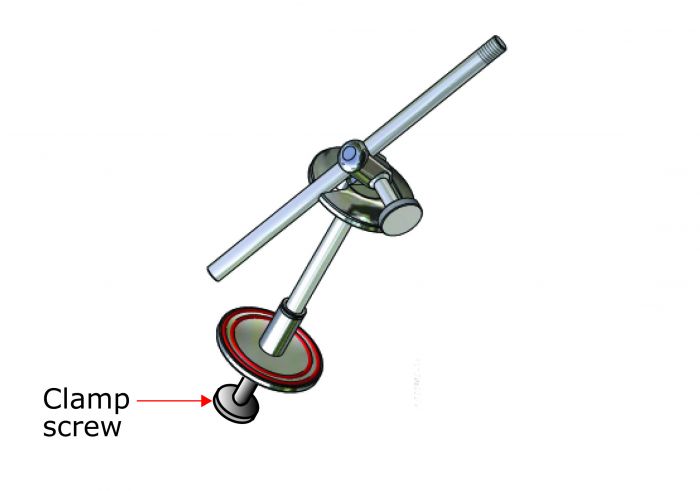 The aluminium screw that screws into the shaft (through the Lower Disk ) to adjust the width between the Disks and to tighten the clamp onto the instrument's body.